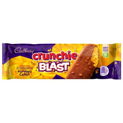 Cadbury’s Crunchie Blast Ice Cream Stick, Honeycomb flavour ice cream covered in milk chocolate with popping candy.