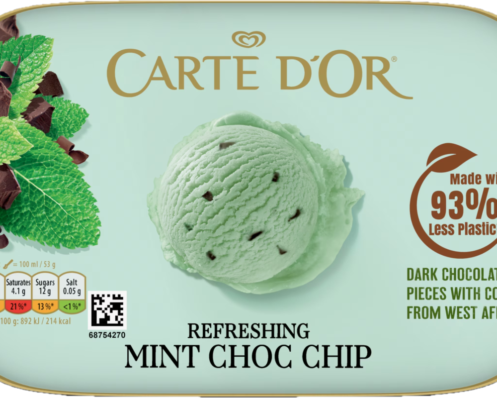 Carte D’or Mint Choc Chip, Refreshing mint ice cream combined perfectly with rich dark chocolate pieces, made with Rainforest Alliance Certified cocoa from Ghana.