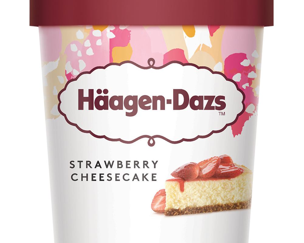 Haagen-Dazs Strawberry Cheesecake, Cheesecake ice cream meets crunchy biscuit pieces and saucy strawberry swirls in a taste overload.