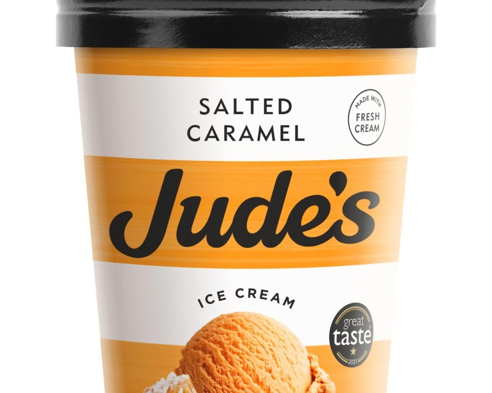 Jude’s Salted Caramel Tub, this scoop is made with fresh cream to be super smooth and indulgent.