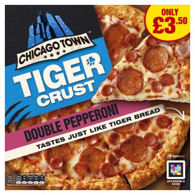 Chicago Town Tiger Crust Pepperoni Pizza, thin & crispy tiger bread style crust that roars in your oven and smother it with signature tomato sauce, then go all out with mozzarella and the mightiest of pepperoni.