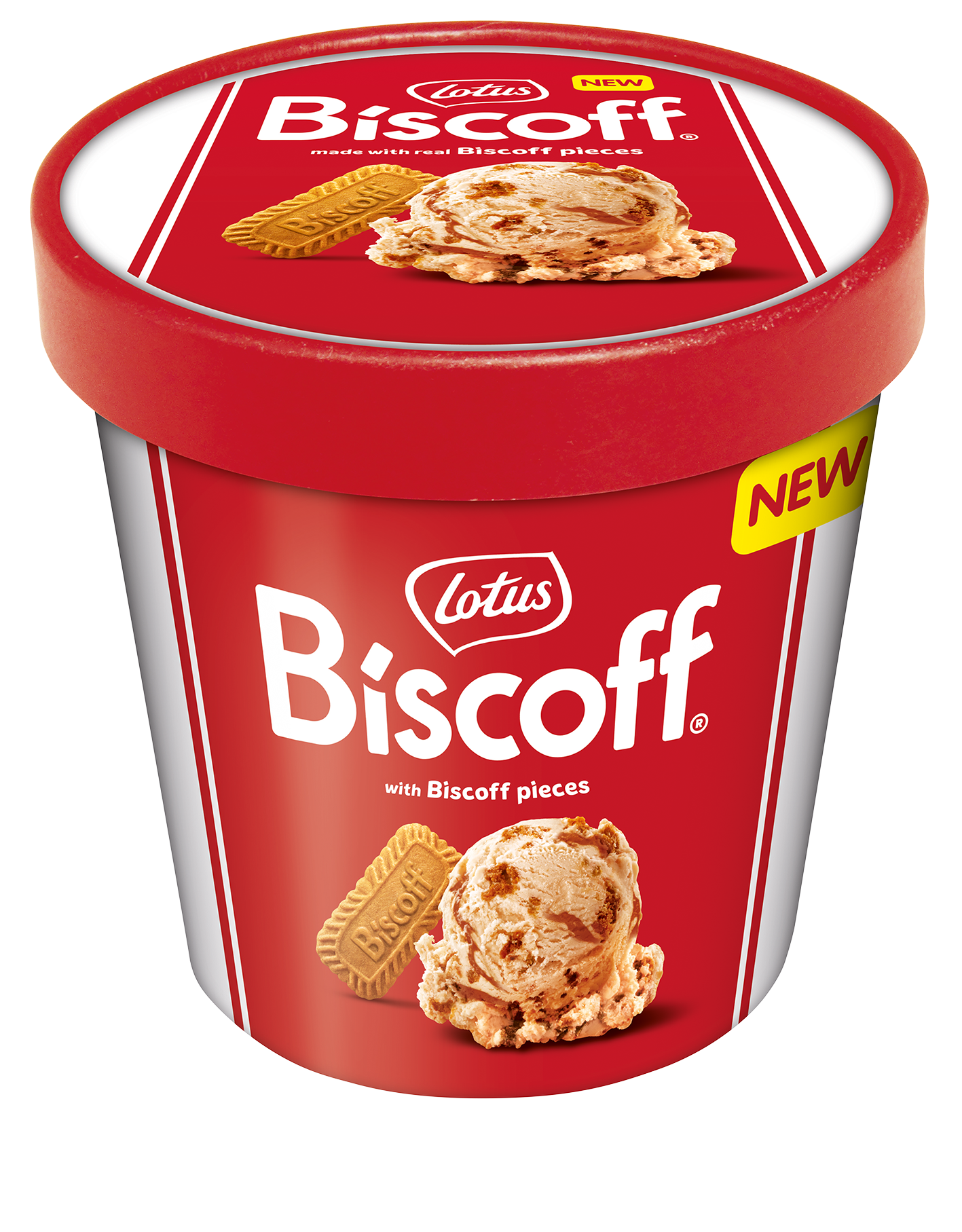 Smooth, sweet dairy ice cream loaded with crunchy Lotus Biscoff golden spiced caramelised biscuit pieces, generously rippled with caramelised biscuit spread.