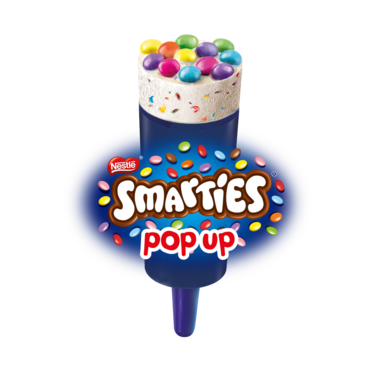 Nestle Smarties Pop Up, Vanilla flavour ice cream with whole mini and crushed milk chocolate pieces in a crisp sugar shell.