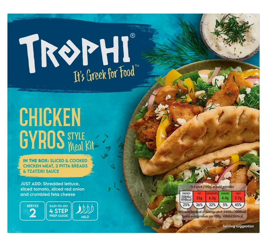 Trophi Chicken Gyros Kit, It’s Greek for food. Easy-To-Do 4 Step Prep Guide. Chilli rating – Mild – 1. You’re about to dive into Trophi.