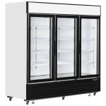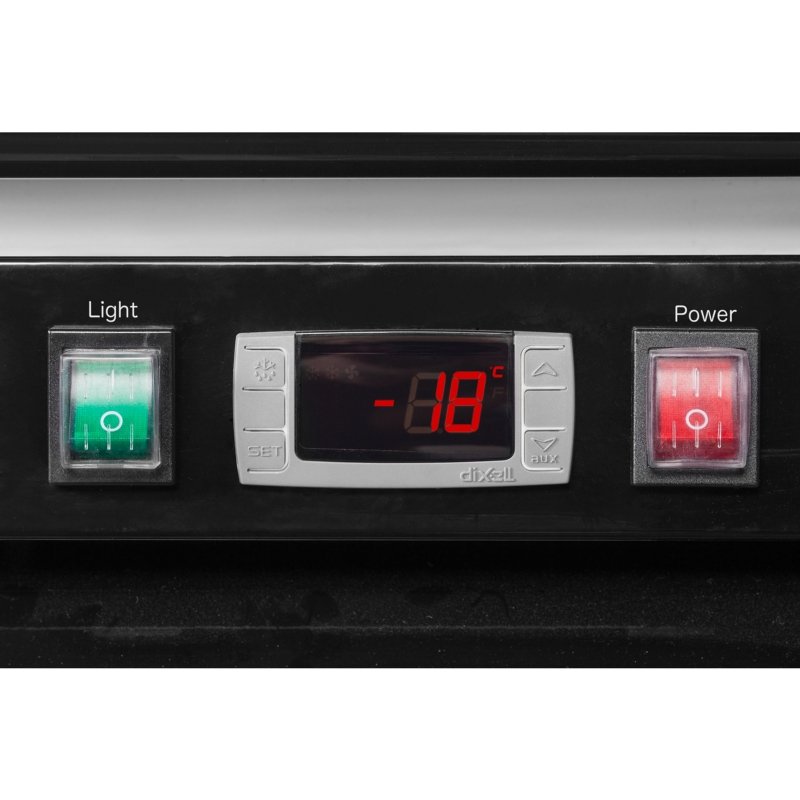 The Interlevin LGF range of glass door freezers gives you the option of matching single, double and triple door units (also with matching chiller versions). These robust cabinets come with some great features. Each door has two vertical LED light strips for excellent internal illumination and a large LED light canopy. The base inside the unit is stainless steel for easy cleaning. The carefully designed refrigeration system is energy efficient to keep running costs down. All units come fitted with castors so you can easily move the unit (for cleaning etc), but also with locking feet. All round a versatile quality unit at a great price ideal for frozen foods and ice cream.